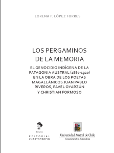 Desde una perspectiva diferente al contexto jurídico y político internacional, Lorena López en Los pergaminos de la memoria –Editorial Cuarto Propio, Santiago de Chile –se adentra en la crónica de los exterminios de las tribus de La Patagonia, el genocidio indígena de la Patagonia austral (1880-1920). El libro de López, investigadora y docente de la Universidad Austral de Chile, es la publicación de su tesis doctoral dividido en dos partes: 1. La crónica del genocidio de colonos chilenos y europeos de los indígenas pobladores de la Patagonia entre el siglo XIX y XX. 2. La representación del genocidio en la literatura chilena a través de textos, fotografías y archivos, como las cartas y documentos de los colonos exigiendo al gobierno chileno la represión (el “desbroce”) de los indígenas.